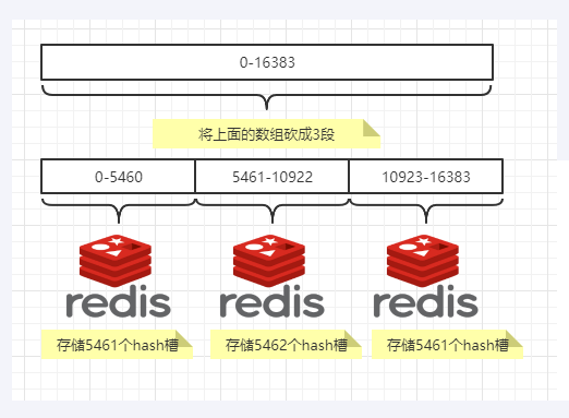 解决均匀分配的问题,在数据和节点之间又加入了一层,把这层称为哈希槽(slot),用于管理数据和节点之间的关系,现在就相当于节点上放的是槽,槽里放的是数据