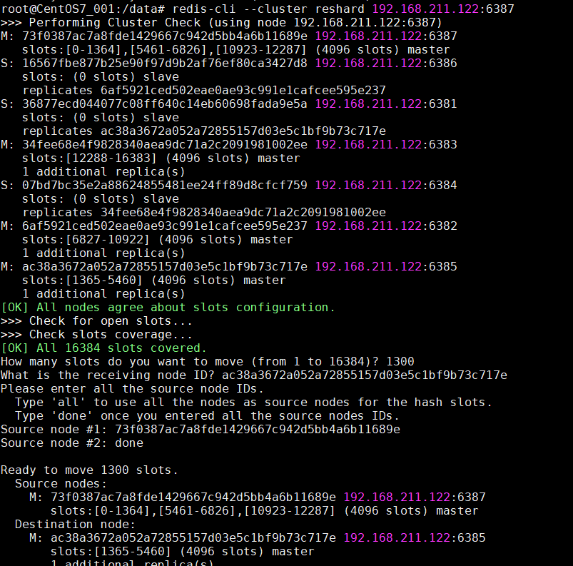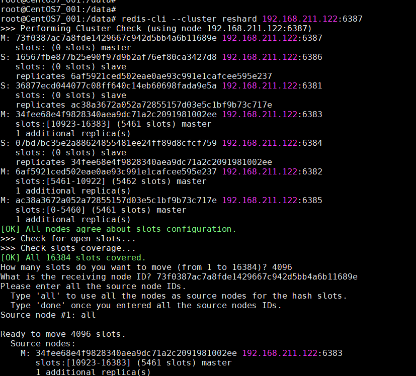 56root@CentOS7_001:/data# redis-cli --cluster reshard 192.168.211.122:6387